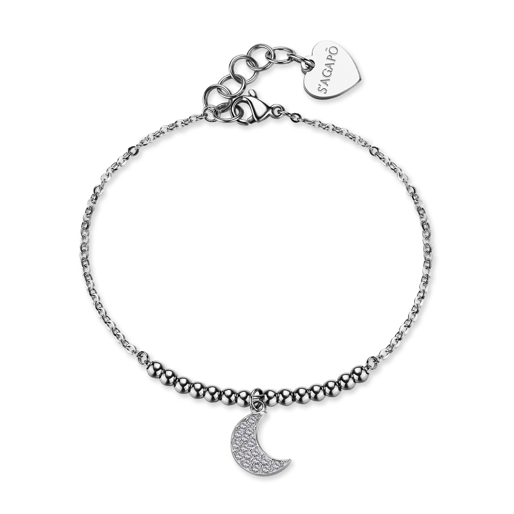 Cavigliera in acciaio 316L con pendente a forma di luna e cristalli.