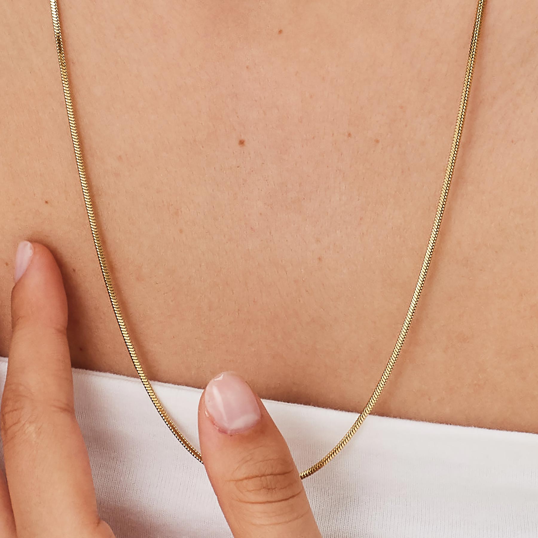 Collana lunga in acciaio 316L e finitura pvd oro 14k con catena snake.